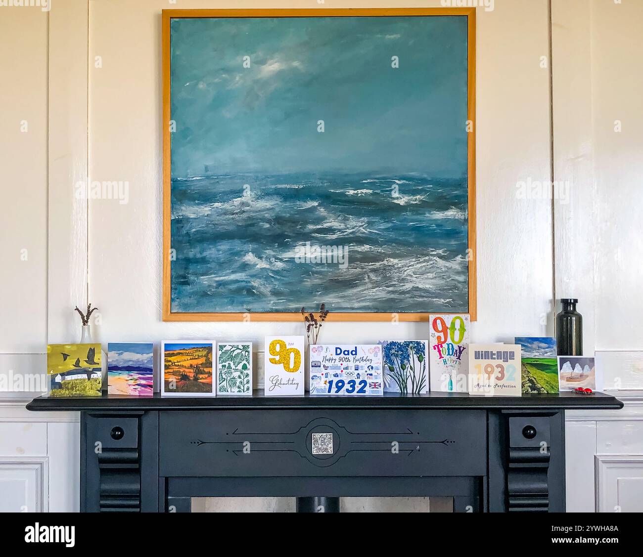 Un caminetto e un manipolo con biglietti per festeggiare il 90° compleanno di un padre in mostra e un dipinto sul mare, nel Regno Unito Foto Stockhttps://www.alamy.it/image-license-details/?v=1https://www.alamy.it/un-caminetto-e-un-manipolo-con-biglietti-per-festeggiare-il-90-compleanno-di-un-padre-in-mostra-e-un-dipinto-sul-mare-nel-regno-unito-image635320906.html