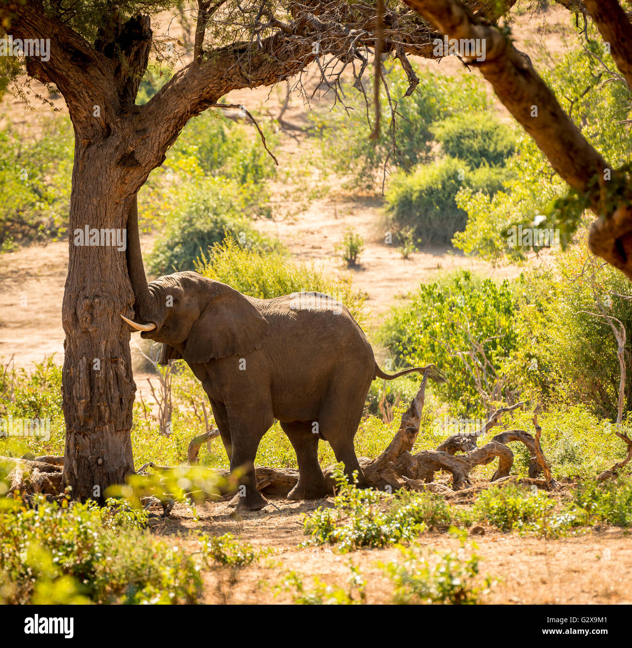 Elefante in Chobe National Park, Botswana, Africa con il suo tronco contro un albero Foto Stockhttps://www.alamy.it/image-license-details/?v=1https://www.alamy.it/foto-immagine-elefante-in-chobe-national-park-botswana-africa-con-il-suo-tronco-contro-un-albero-105069889.html