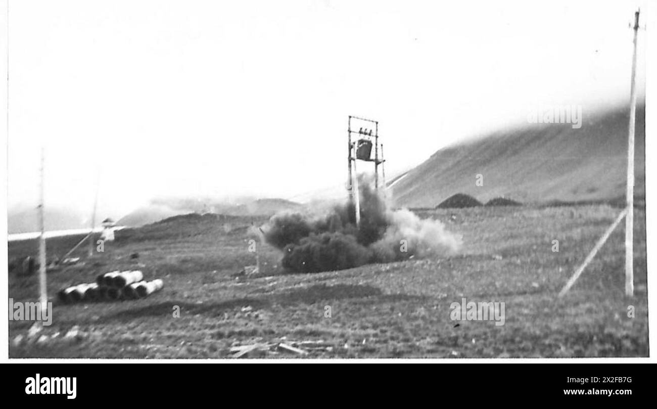 Demolizione di un trasformatore da macchinari minerari durante il raid di Spitzbergen da parte delle forze dell'esercito britannico. Foto Stockhttps://www.alamy.it/image-license-details/?v=1https://www.alamy.it/demolizione-di-un-trasformatore-da-macchinari-minerari-durante-il-raid-di-spitzbergen-da-parte-delle-forze-dell-esercito-britannico-image603930308.html