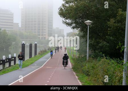 Percorso ciclabile lungo il Weesperzijde ad Amsterdam, Paesi Bassi 7-10-2025